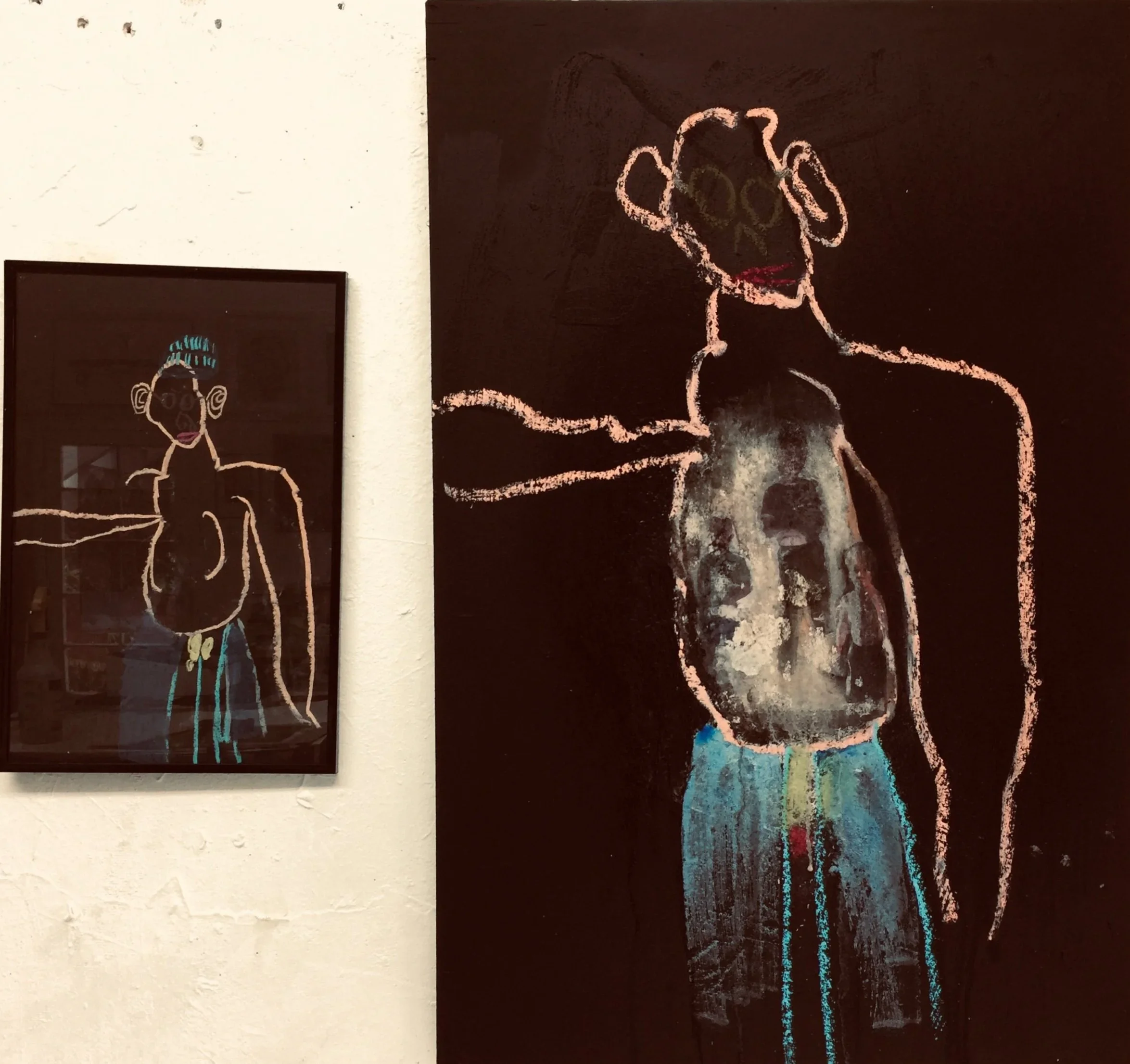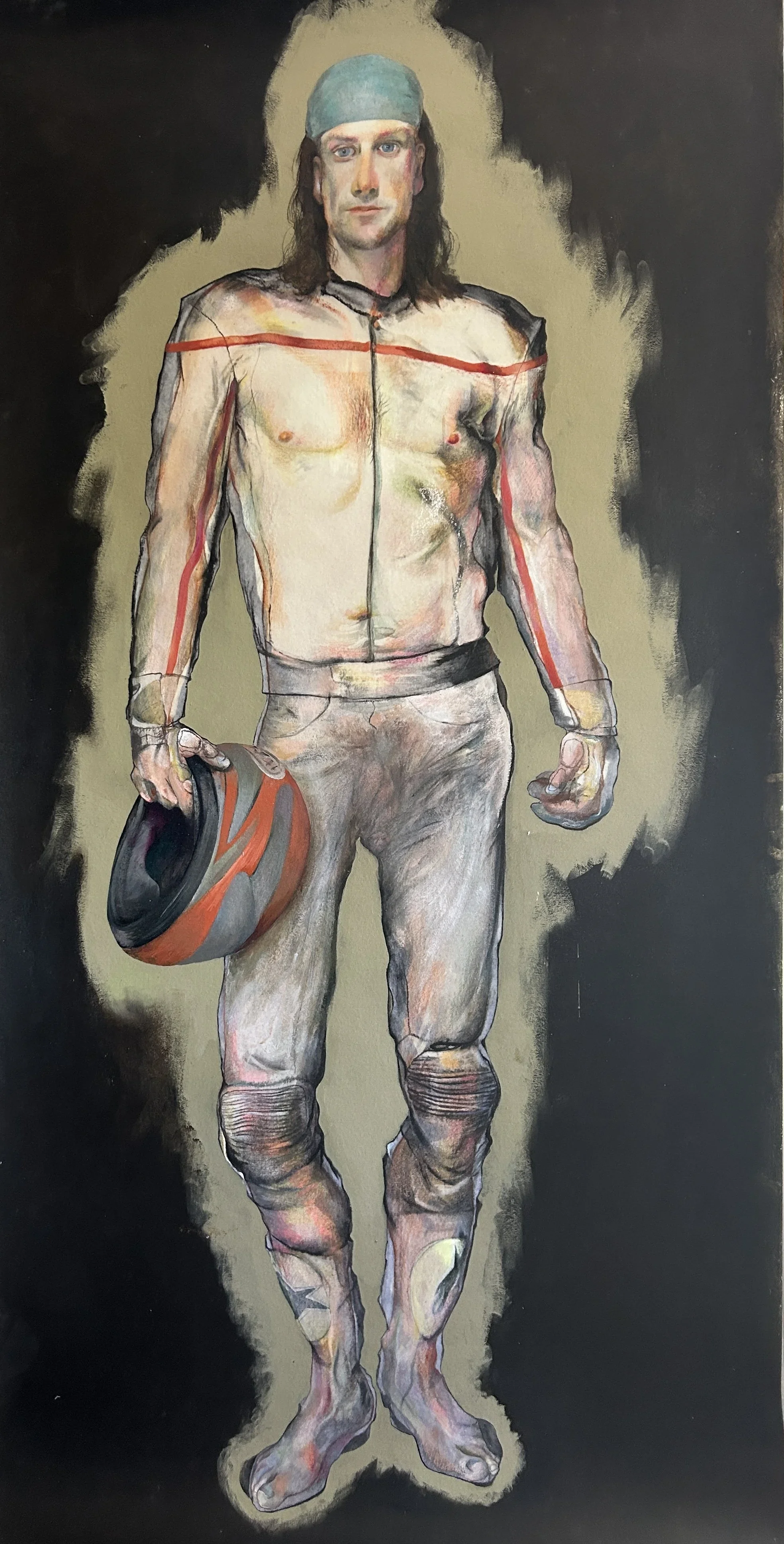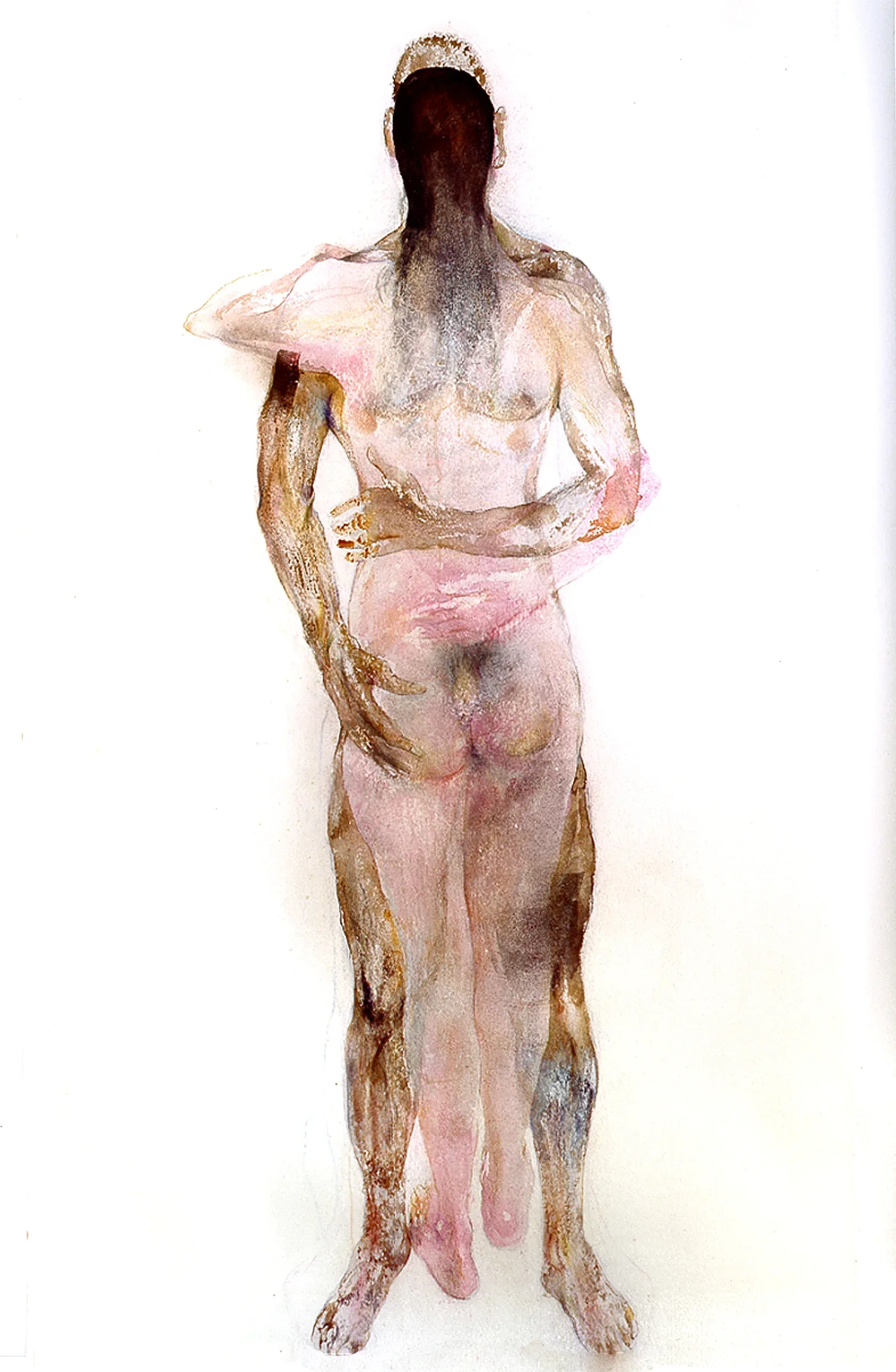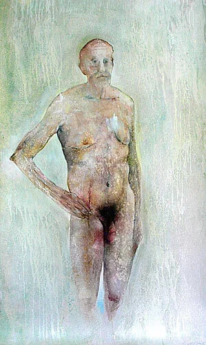 José Garza is a civil servant that I met in a municipal pool about twenty years ago. I was struck by his austere demeanor which reminded me of the Spanish painter, Zurbarán. Soon after, I completed his portrait and later, our artistic relationship developed into formal standing nude portraits. Subsequently, he was the main subject matter of a series of monumental drawings that were recently compiled into a publication called Side Life. He continues to inspire my figurative work in the recent piece Nadie and an ongoing series of Garza Ghost mixed media works.