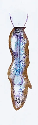 HOMUNCULUS is a double sided "tapestry-like" hanging depicting a generic human figure splayed openly on a colorized ground of fiberglass mesh. It is inspired by a medical illustration found in a Persian manuscript by Mansur Ibn Muhammad from 1390. The central image was enlarged and transferred reprographically onto a pearlescent painted mesh then drawn and painted with acrylic and bright rivulets of oil and enamel paint, enhancing the vascular system as visualized by the original artist .The central figure is surrounded by smaller images of anatomical details of body parts derived from European anatomical treatises also painted in acrylic & oil paint. This interesting juxtaposition of styles creates a contrast of the schematic, symmetrical almost carved feeling of the Persian illustration with the European illusionistic anatomical rendition.