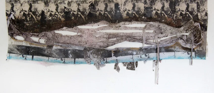 Acrylic, xerox transfer, nylon, earth, on nylon and synskin