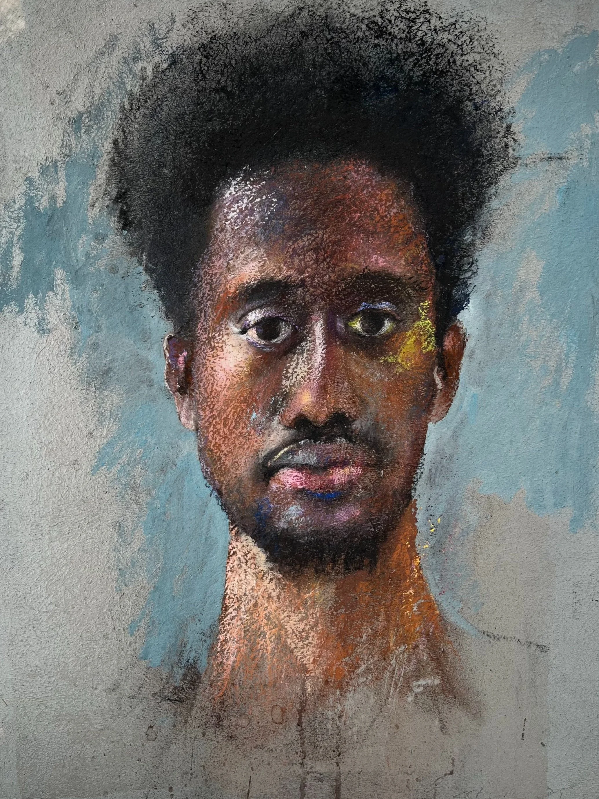 Charcoal, pastel, oil pastel on synskin